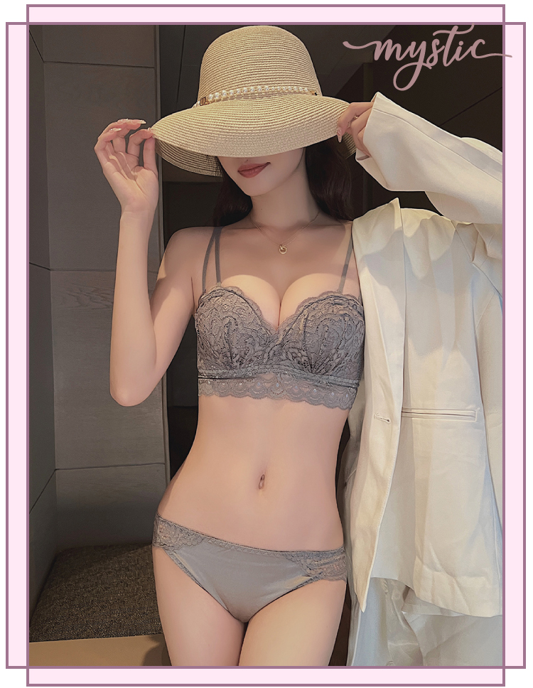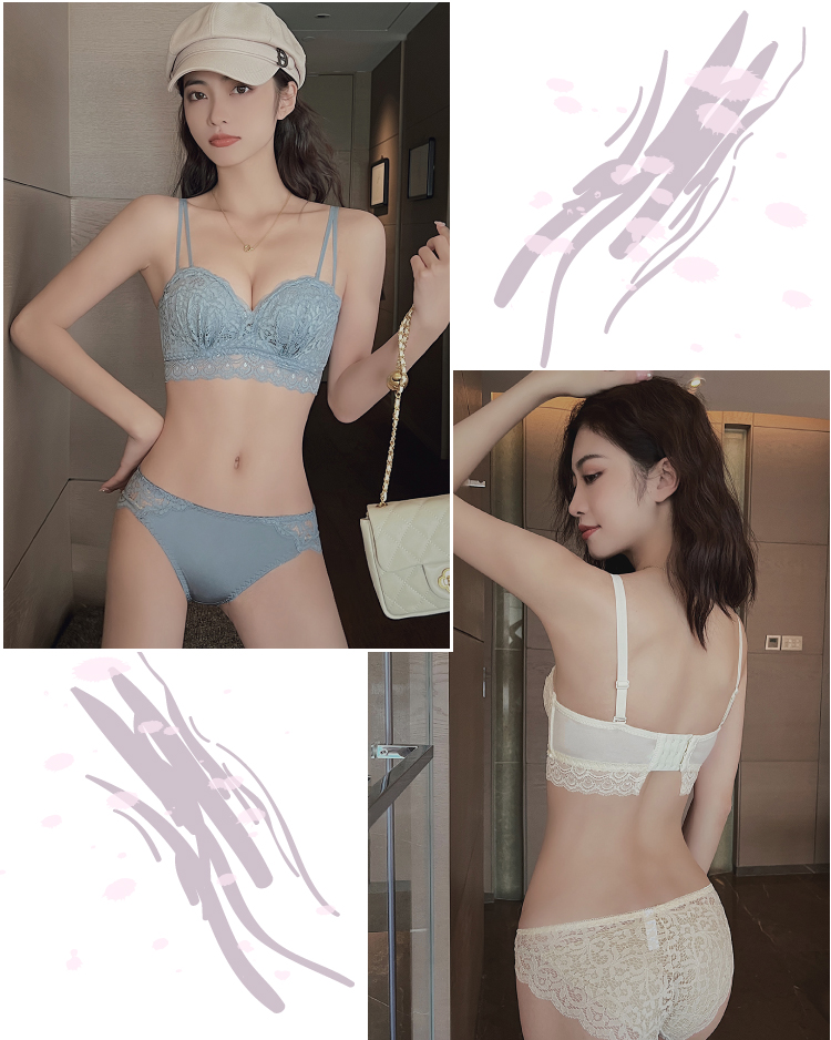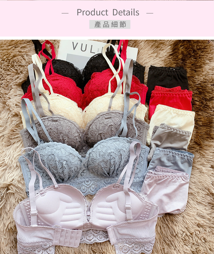 • 蕾絲抓皺美胸無鋼圈成套內衣