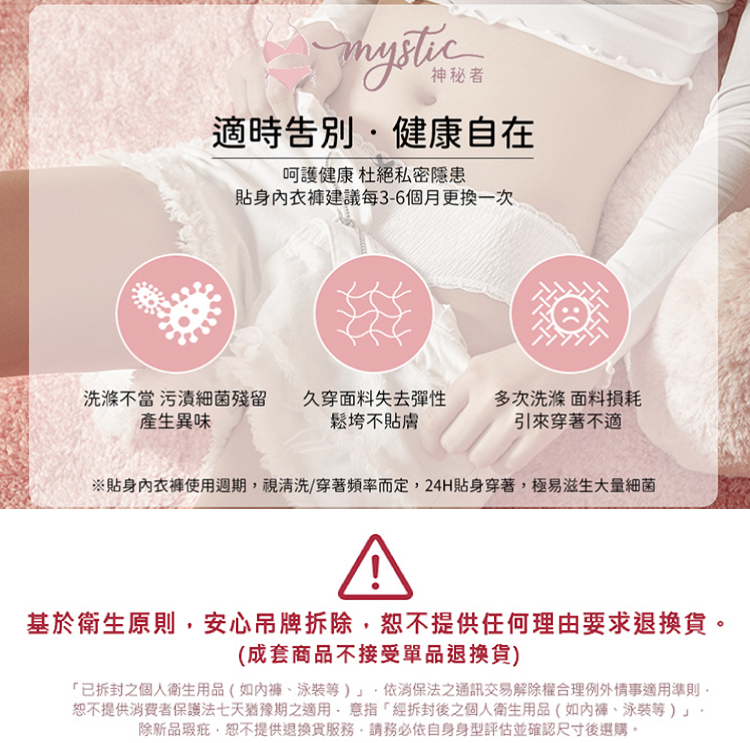 ※ 「已拆封之個人衛生用品(如泳衣/內衣褲)」,依消保法之「通訊交易解除權合理例外情事適用準則」,恕不提供七天猶豫期之適用。 ※ 意指「經拆封後之個人衛生用品(如泳衣/內衣褲)」,除商品瑕疪,恕不提供退換貨之服務,請務必依自身身型評估並確認尺寸後選購哦。 ※ 由於每台顯示螢幕出廠設定值以及個人偏好設置不同,若有些許色差屬正常現象,實際以收到實品為準。 ※ 手工量測尺寸,由於每款商品版型與彈性屬性有所差異,