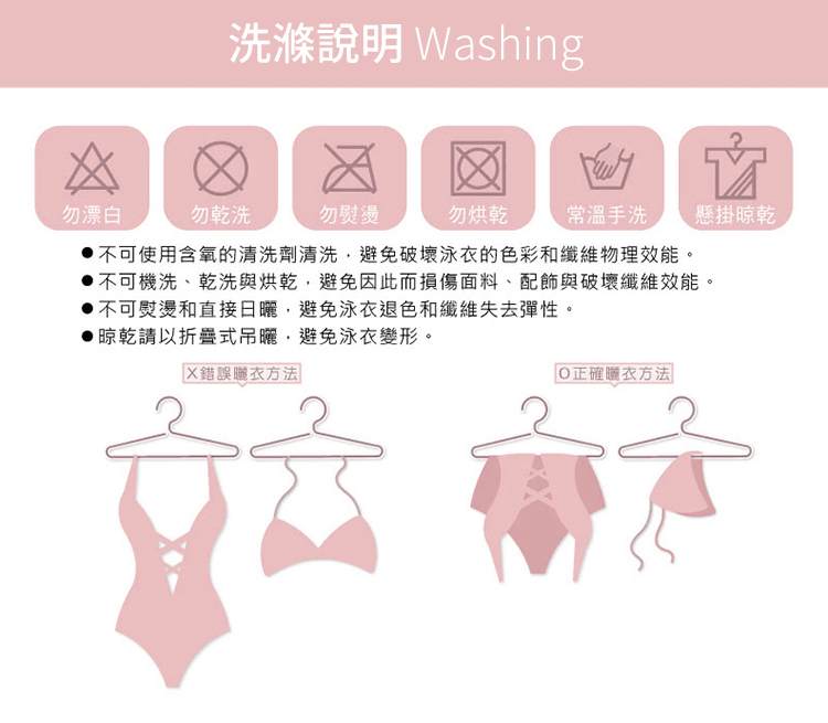 ※ 「已拆封之個人衛生用品(如泳衣/內衣褲)」,依消保法之「通訊交易解除權合理例外情事適用準則」,恕不提供七天猶豫期之適用。 ※ 意指「經拆封後之個人衛生用品(如泳衣/內衣褲)」,除商品瑕疪,恕不提供退換貨之服務,請務必依自身身型評估並確認尺寸後選購哦。 ※ 由於每台顯示螢幕出廠設定值以及個人偏好設置不同,若有些許色差屬正常現象,實際以收到實品為準。 ※ 手工量測尺寸,由於每款商品版型與彈性屬性有所差異,